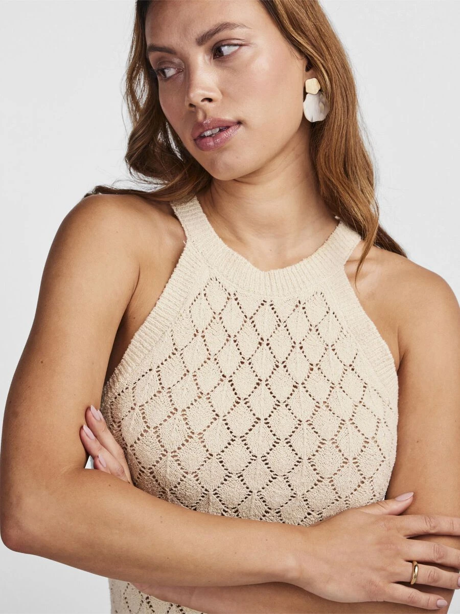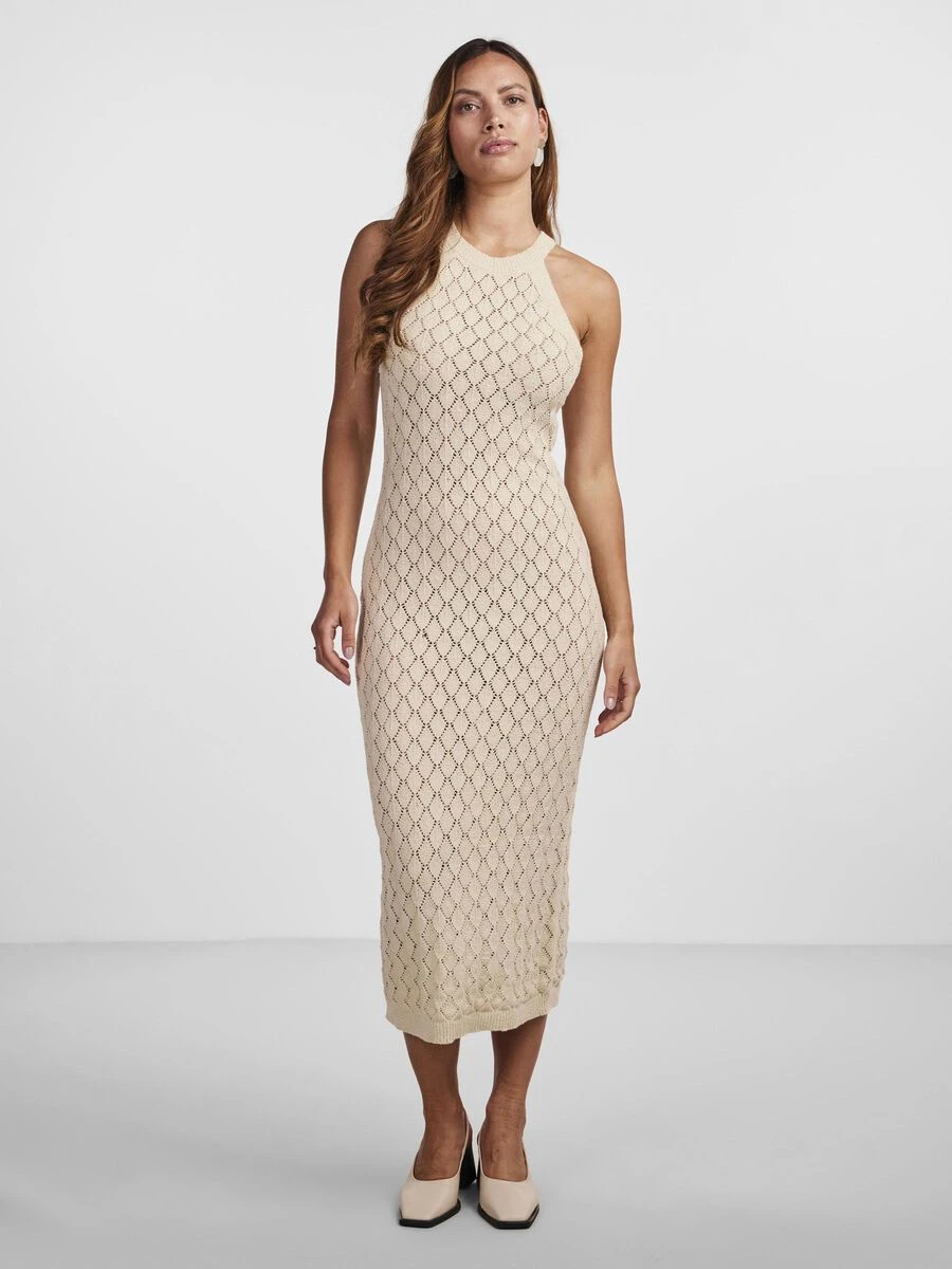 – Gebreide mouwloze midi jurk